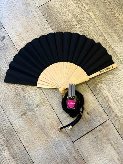 Basta un leggero spruzzo sul retro del ventaglio, i materiali sono scelti per trattenere la fragranza senza macchiare.